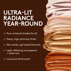 That post-vacay glow is now yours year-round with this smooth. gel-based body luminizer that glides on and leaves skin looking dewy. Get ready to bathe your skin in a radiant. high-shine finish that does to your body what