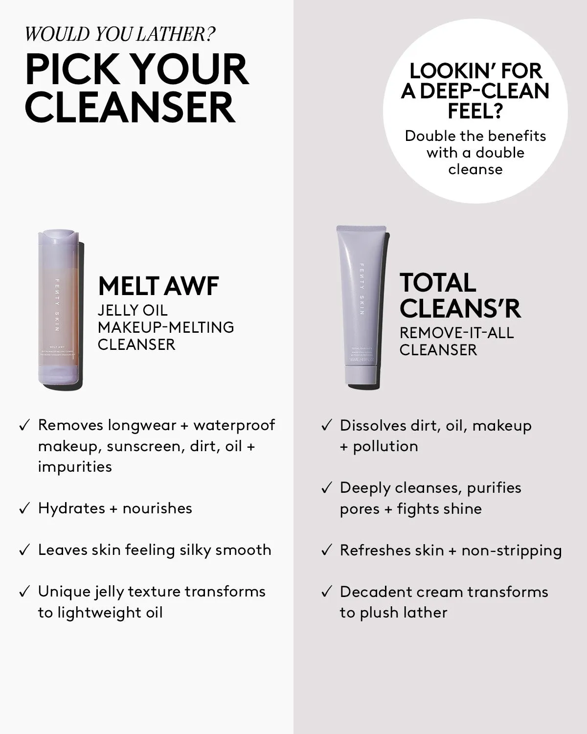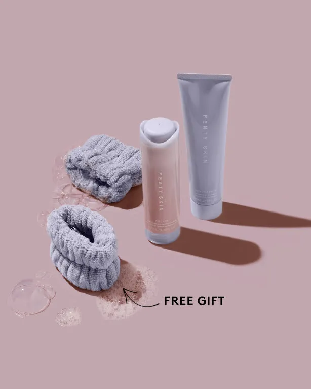 Bring twice the self-care to your skincare routine. First. put on your exclusive cleansing cuffs you can only cop here. Next. melt longwear + waterproof makeup to take it all off without stripping. Then indulge in a creamy. plush lather to deeply cleanse + purify from the pores up.