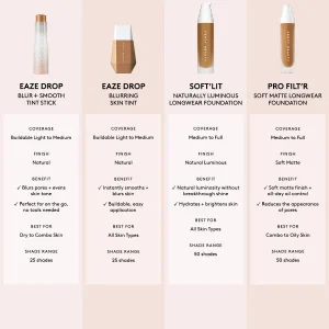 Step into your best light. A longwear. medium coverage foundation that gives golden hour glow all day long and stays fresh. It hydrates. brightens and improves skin tone both instantly and over time. while resisting sweat. humidity and transfer. This lightweight. waterpoof formula instantly reduces the appearance of shine and gives a whole new kind of radiance. This is just-right. notch-above-natural luminosity in a bottle.