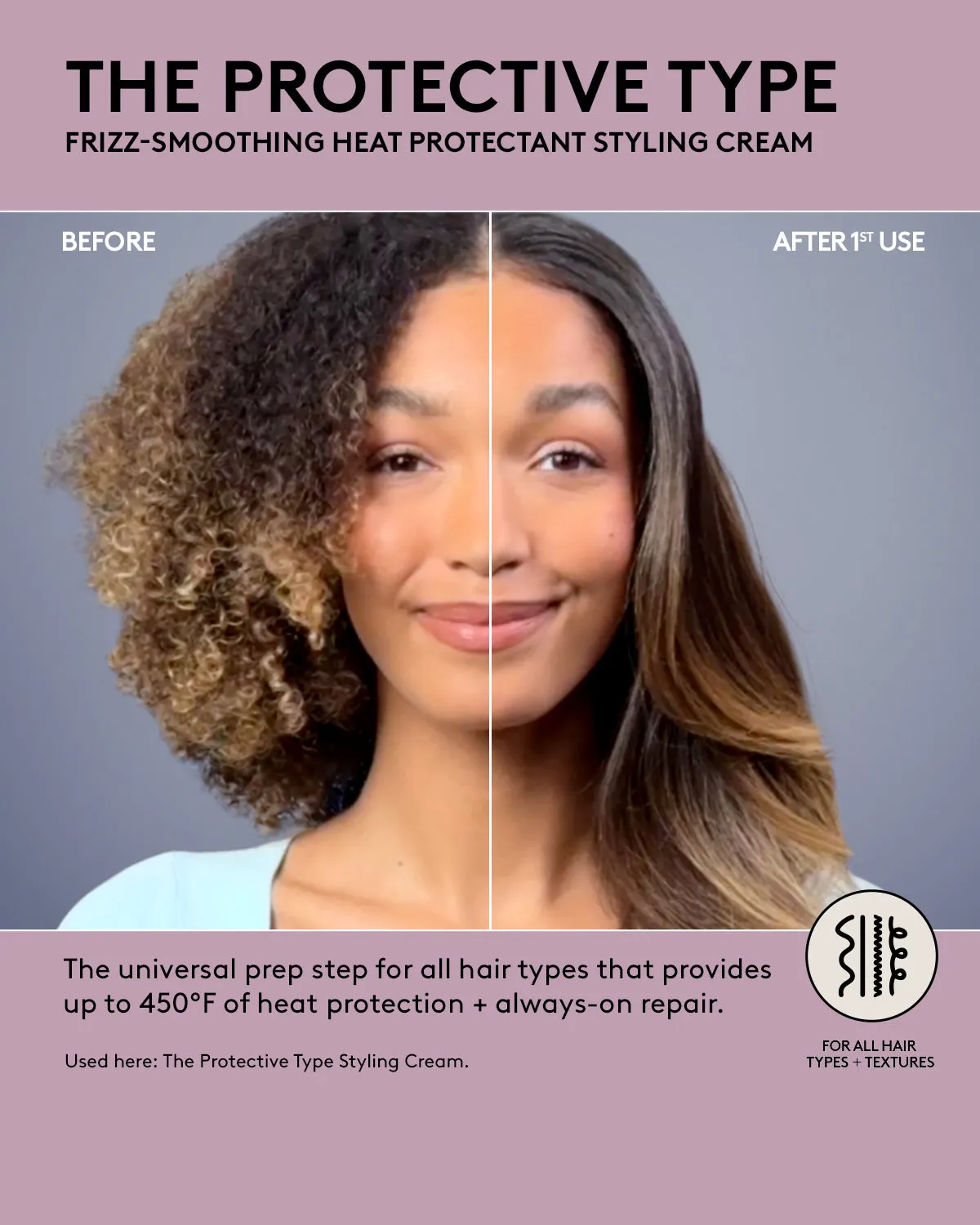 The only frizz-smoothing heat protectant styling cream you need for silk presses. blowouts + diffusing with up to 450°F of heat protection + always-on repair.