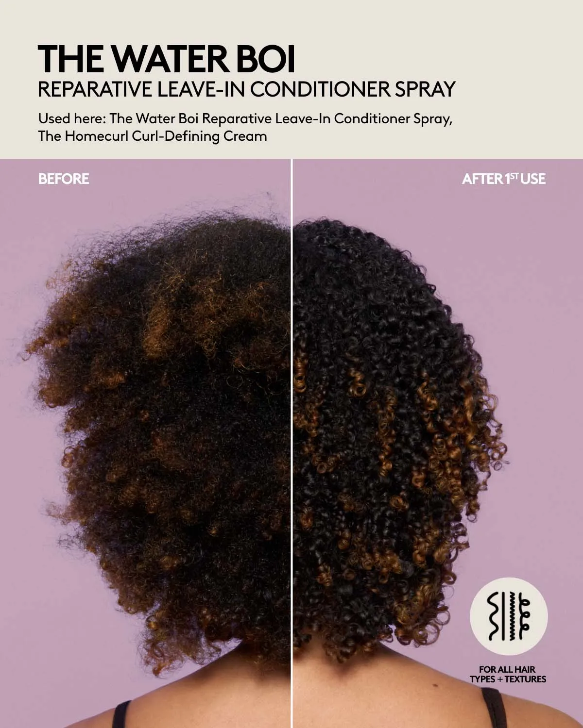 A lightweight. multitasking. reparative leave-in conditioner spray that provides all-day hydration. detangles. smooths frizz. softens + refreshes strands.
